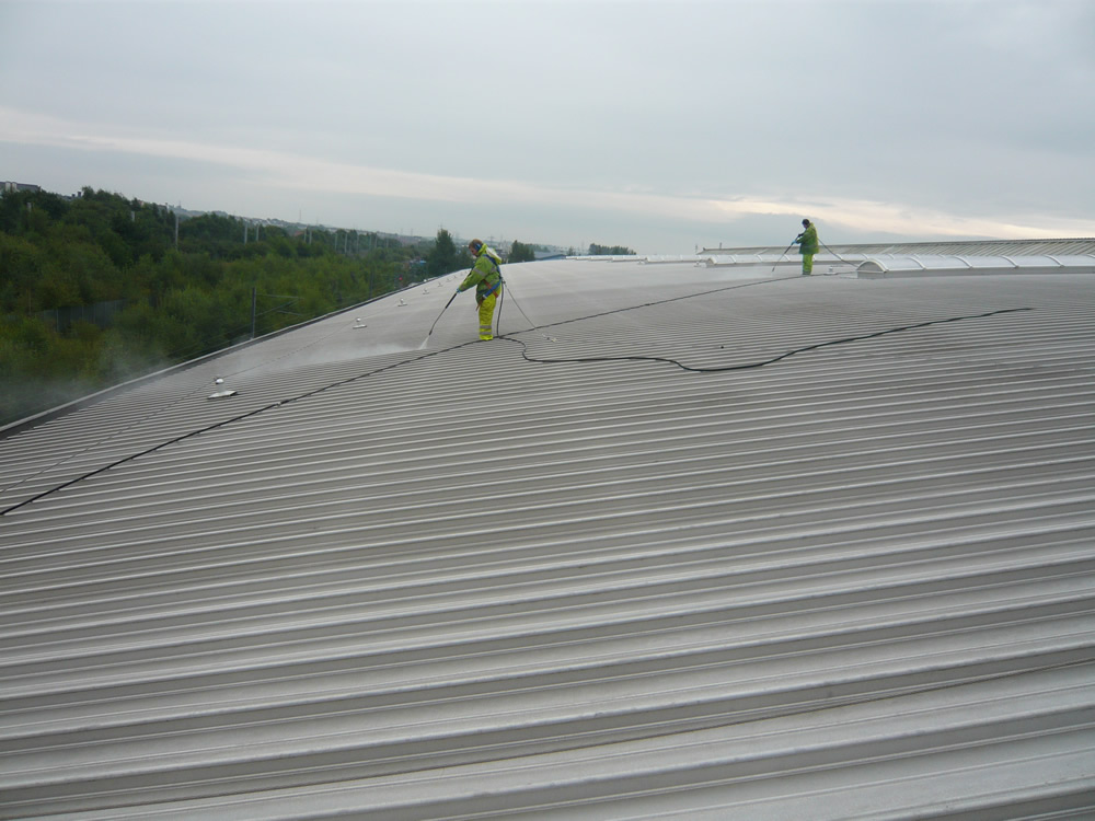 Do bề mặt mái tôn là lộ thiên nên khi thi công xong lớp foam chống nóng cho mái tôn ta nên phun một lớp topcoat bảo vệ nhằm mục đích chống chịu thời tiết, tăng tuổi thọ của lớp foam chống nóng.